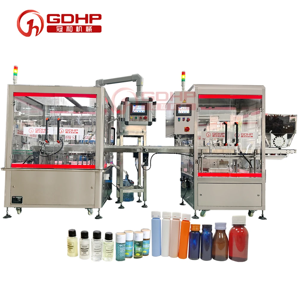 Integrates filling, capping and capping in one machine.Designed for high-viscosity liquids such as glycerin.Adopts high-precision metering system to ensure accurate filling and no dripping.The equipment automatically completes operations such as capping, capping and capping.Ensures reliable sealing,